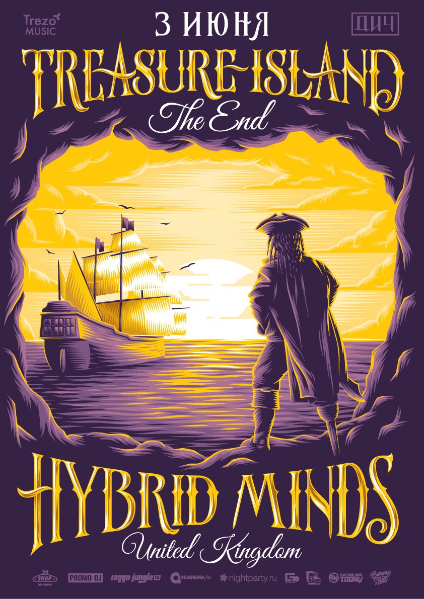 Hybrid Minds @ Treasure Island: Closing, Москва, 3.06.16 За четыре года своего существования, вечеринки Treasure Island стали знаком качества для любителей интересной музыки. Но, согласно законам Вселенной, рано или поздно всему приходит конец. И мы здесь не стали исключением. На нашу прощальную встречу, прямиком из Лондона, были приглашены резиденты лейбла Spearhead Records и авторы самых душевных баллад — Hybrid Minds. Кроме того, вас ждут наши многочисленные друзья, которые оккупируют два танцпола клуба «ДИЧ» ночью третьего июня. Ценителям ликвид фанка и интеллектуального аудио-искусства в частности пропускать не советуем. Такое больше не повторится. Main: (soulful / liquid / intelligent drum&bass) Hybrid Minds Cutworx & Phlorid Traffic & Zebra Erick Trodly & S:LV Bar: (bass music / breaks / UK garage) Faib Novak Jazzman Launch & Karna Inkey & Dubfellah Билеты: До 00:00 — 500 ₽ После 00:00 — 600 ₽ После 02:00 — 700 ₽ После 04:00 — 300 ₽ FC / DC / 18+ 3 июня, пятница, клуб «ДИЧ». Москва, ул. Яузская д. 5 Начало в 23:00 http://vk.com/trezomusic